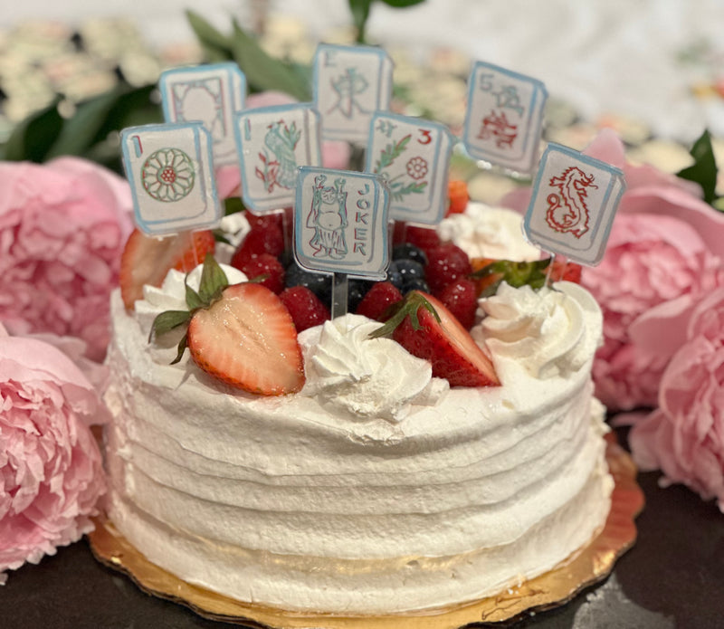 Modern Mahjong Tile Toppers for cakes, cupcakes, dessert, charcuterie (set of 8)