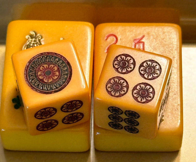 Bakelite limited edition Mahjong Dice - engraved & hand painted designs on vintage Bakelite