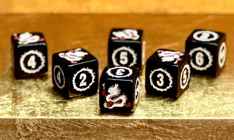 2024 - Year of the Dragon Mahjong Dice™ - White Dragon - one pair of 19 mm black dice