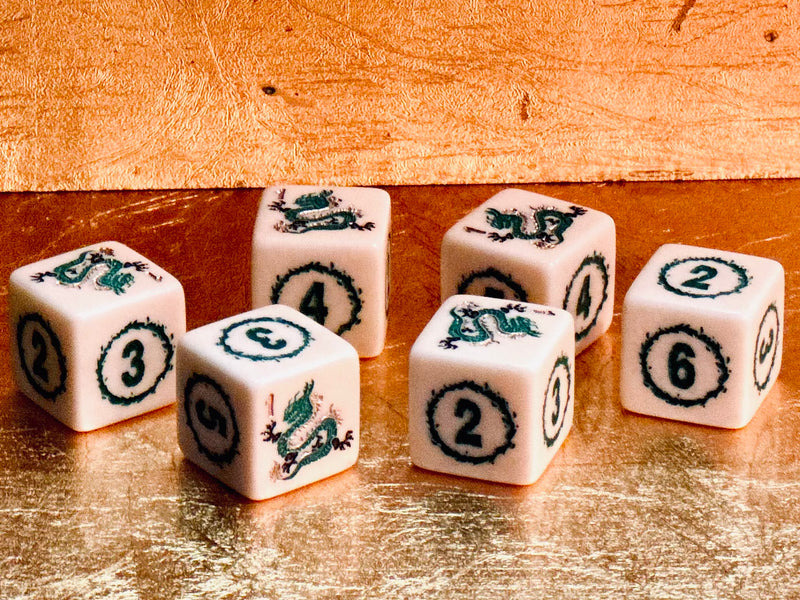 Year of the Dragon Mahjong Dice™ - Green Dragon - one pair of 19 mm ivory color dice