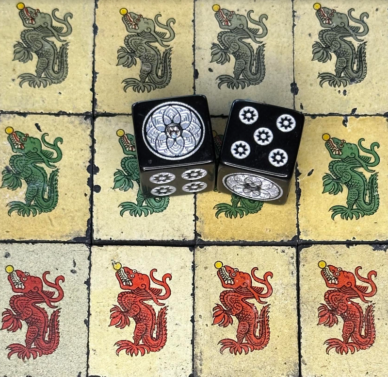 One Joker Away - one pair of black 19mm size dice with gold and silver