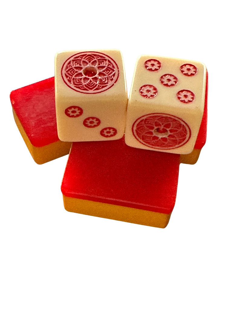 Red Hot Bling - one pair 19 mm ivory color dice with red and red stone