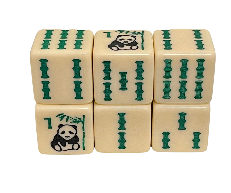 Panda Bear Bamboo - one pair of 16 mm ivory dice with panda bear and bam designs