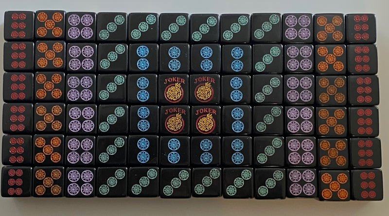 Rainbow Roll - the Sequel - one pair of slightly larger 19mm black dice with multicolors