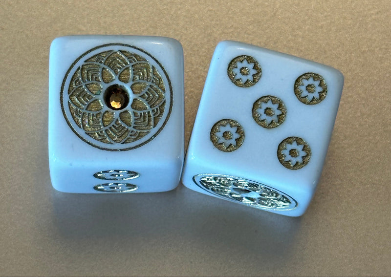 Gold Rush Bling - one pair 19 mm white dice with gold & smoke topaz stone