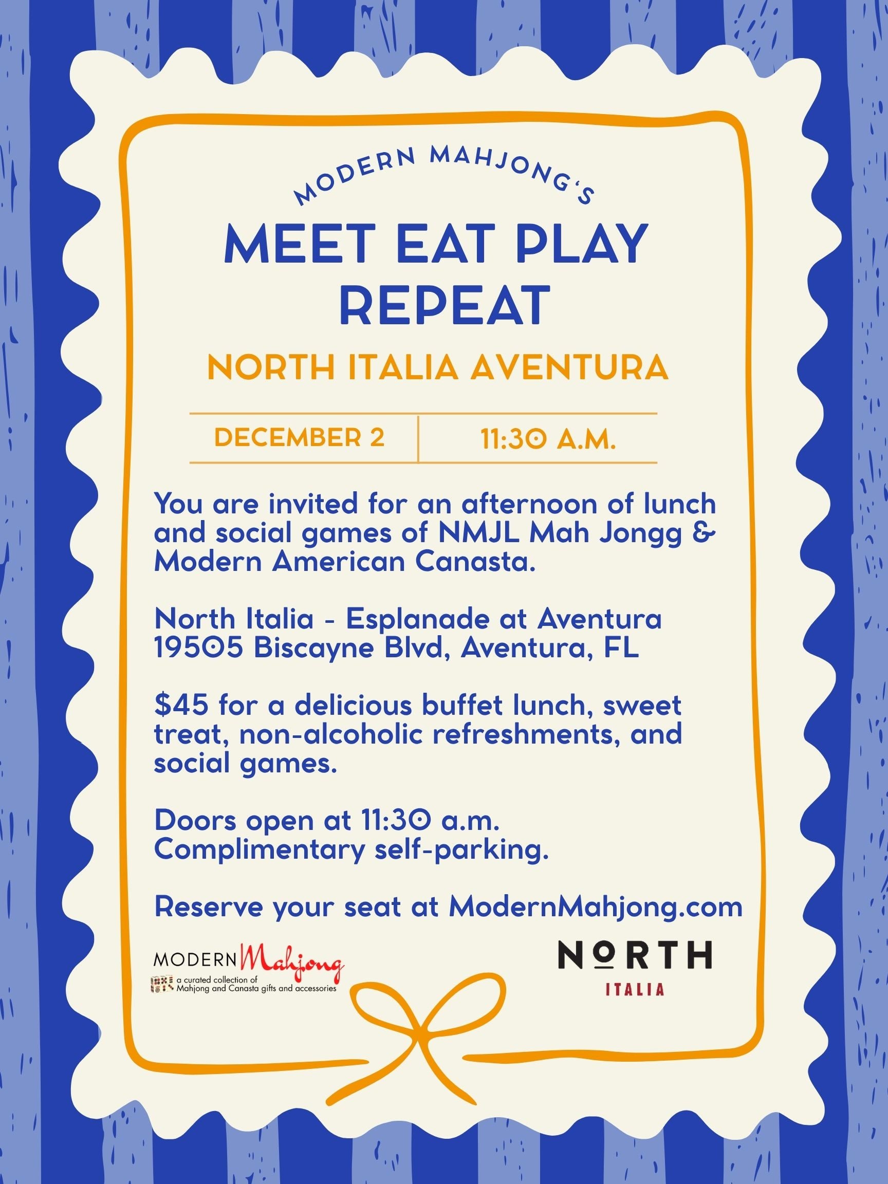 You are invited for an afternoon of lunch & games at North Italia restaurant in Aventura, Florida on Tuesday, December 2, 2025. Doors open at 11:30 a.m.